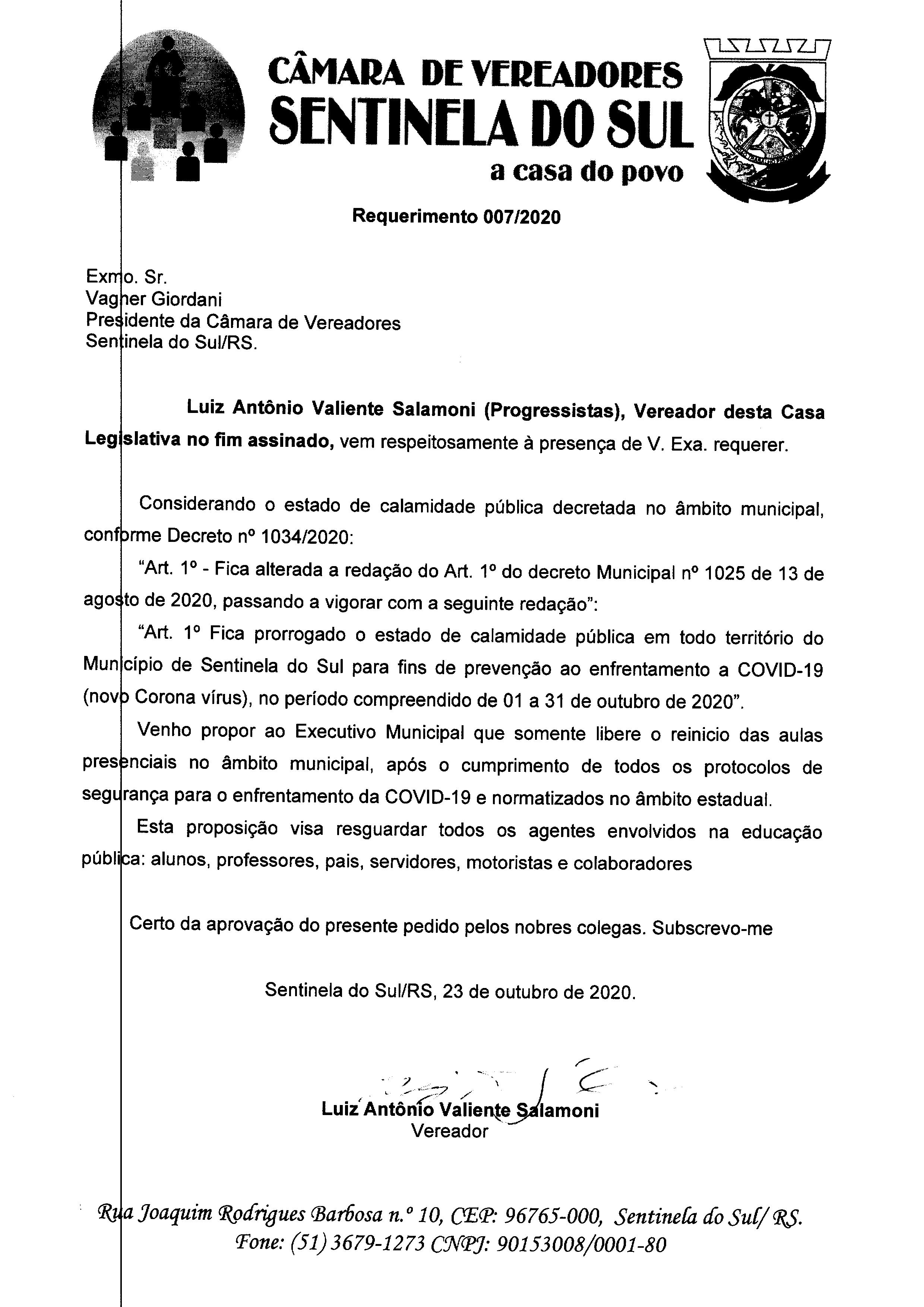 REQUERIMENTO 007/2020
