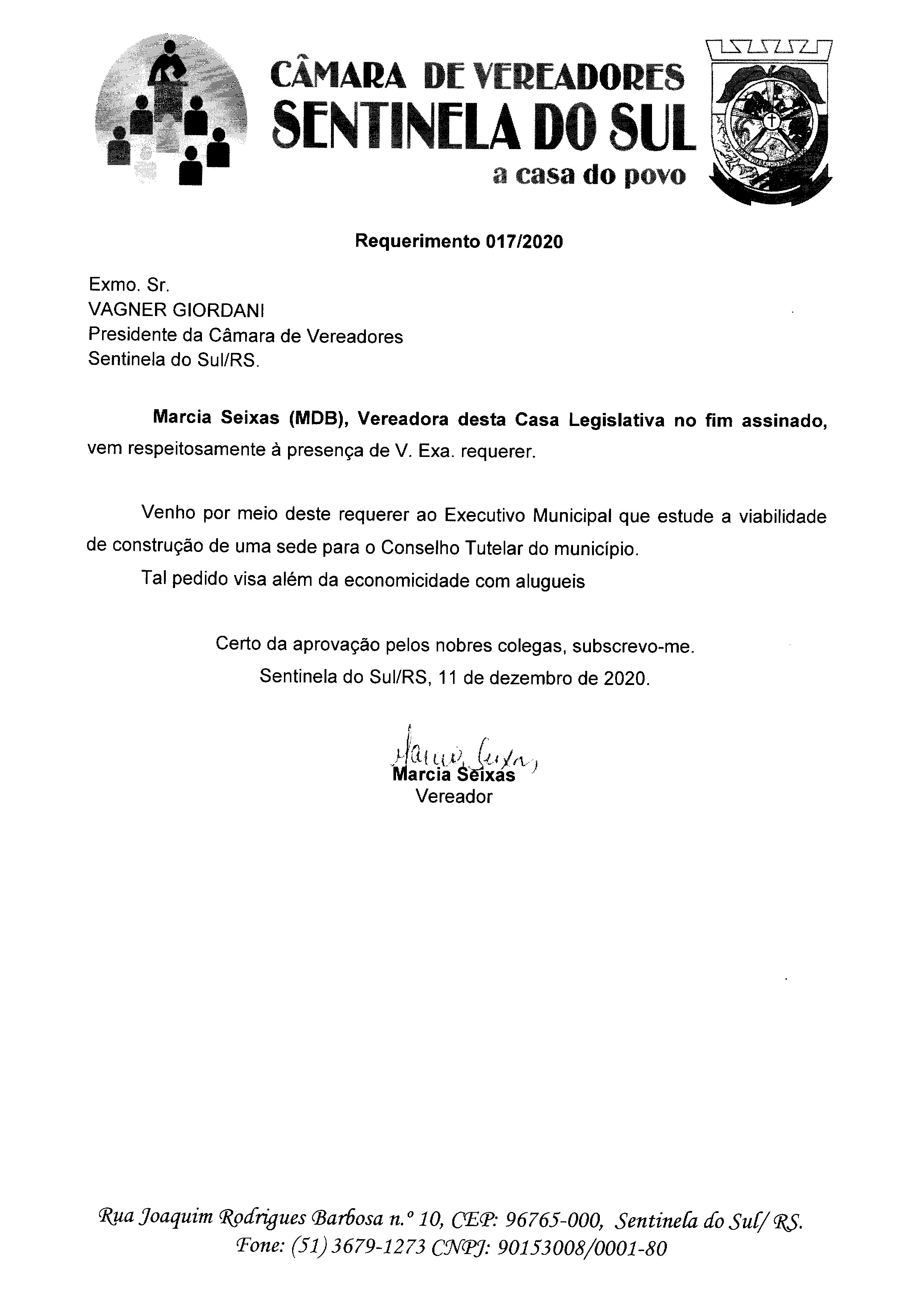 REQUERIMENTO Nº 017/2020