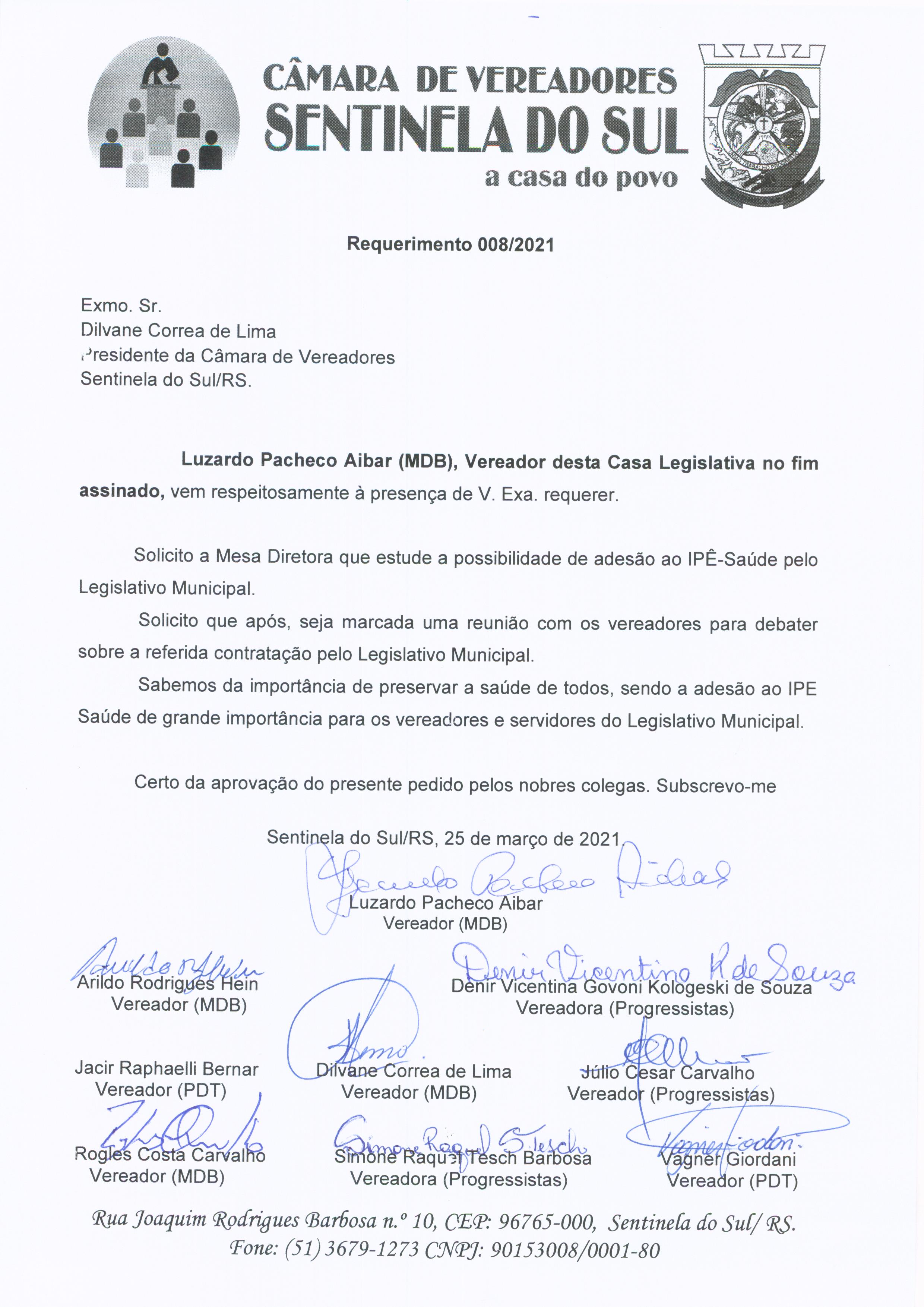 Requerimento de autoria do vereador Luzardo Pacheco Aibar em conjunto com os demais vereadores