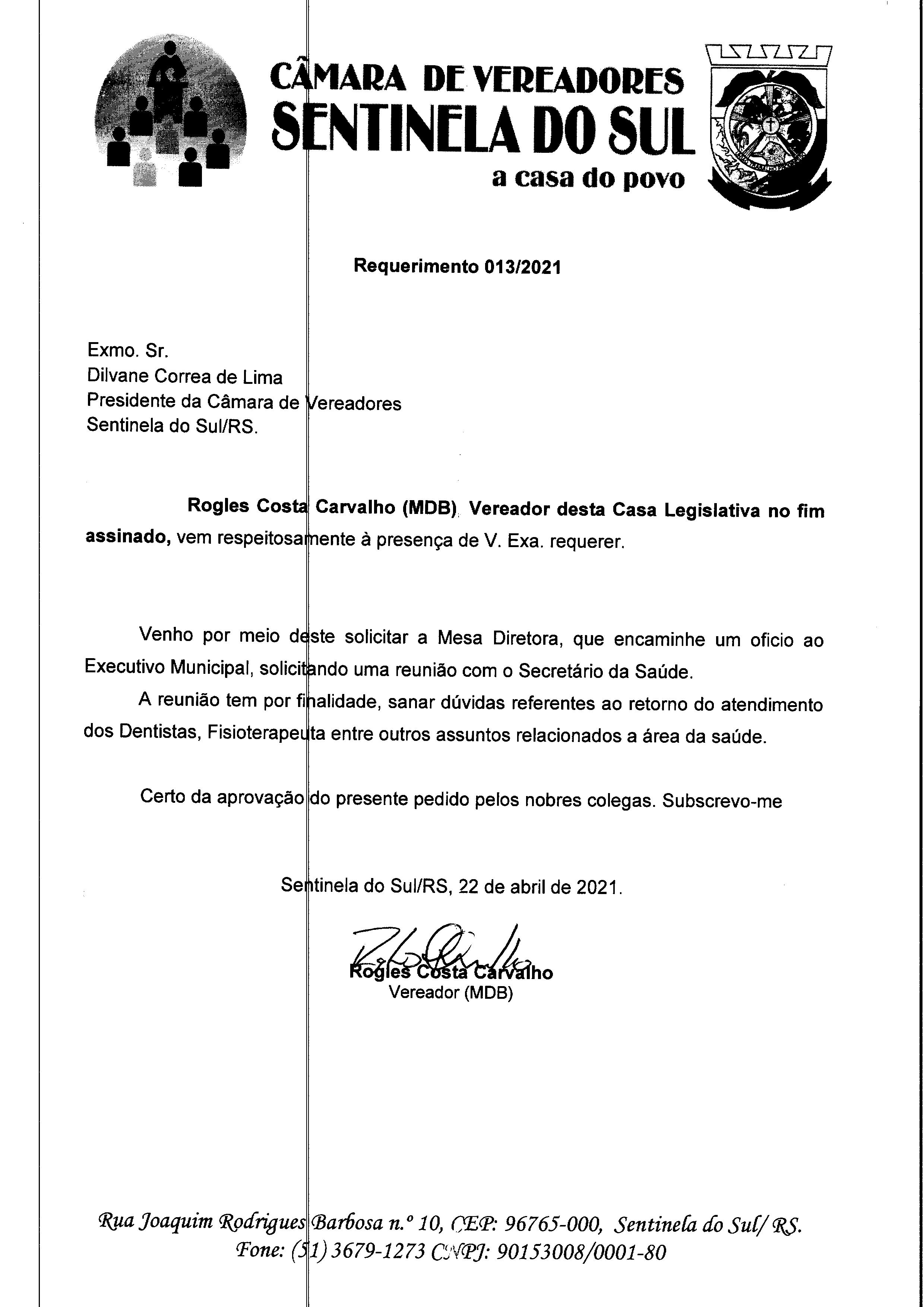 Requerimento nº 013/2021