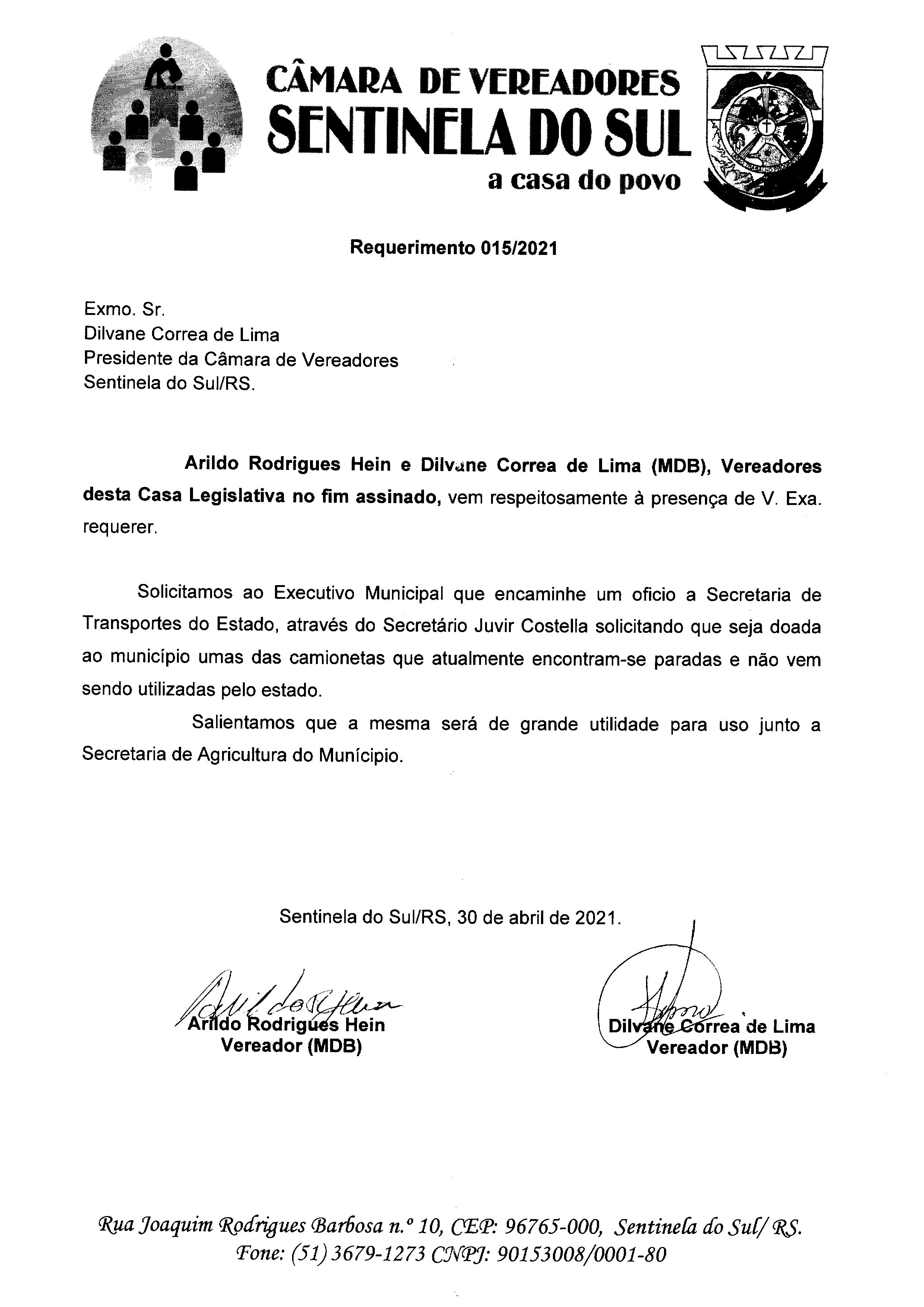 Requerimento nº 015/2021