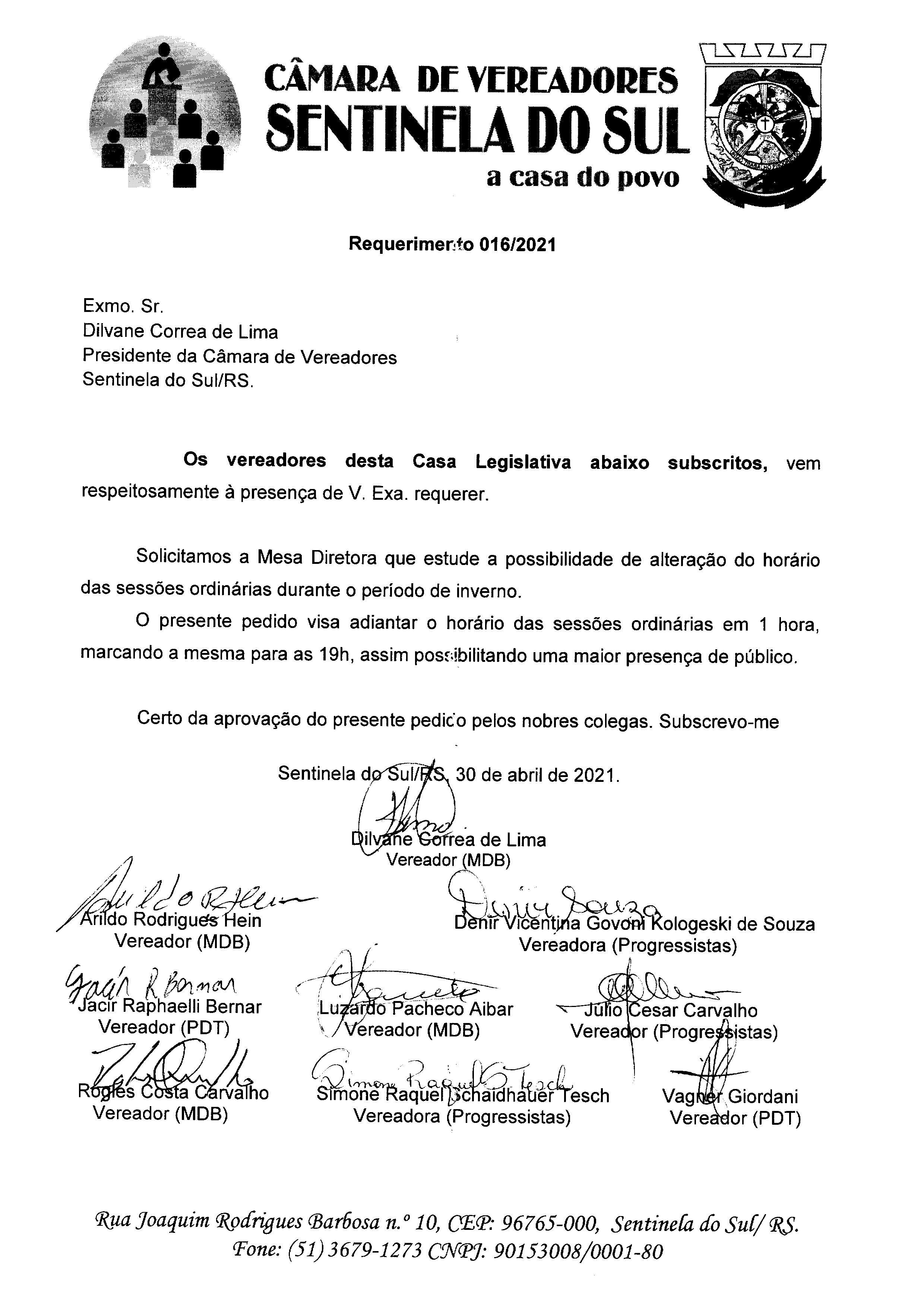 Requerimento nº 016/2021