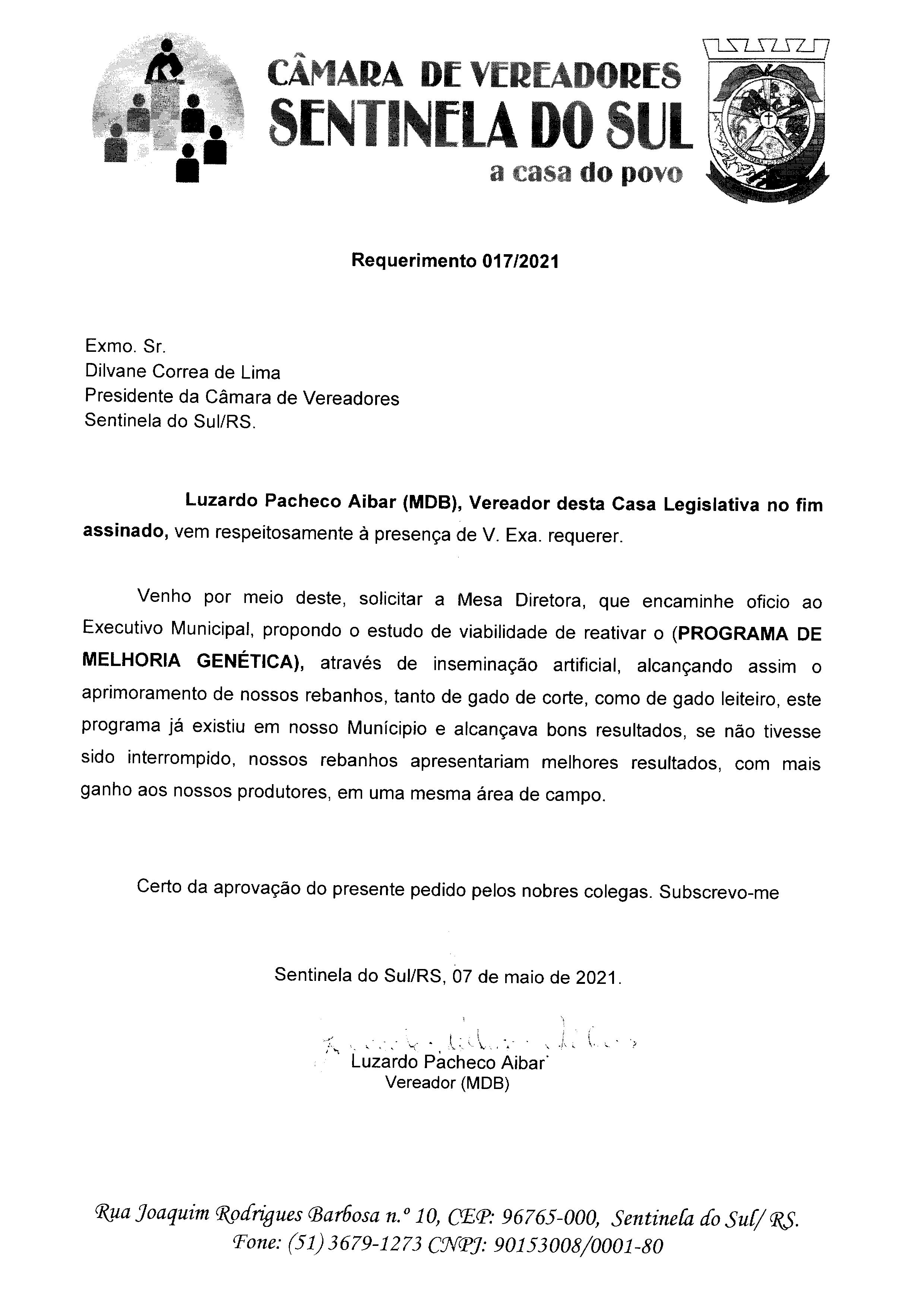 Requerimento nº 017/2021