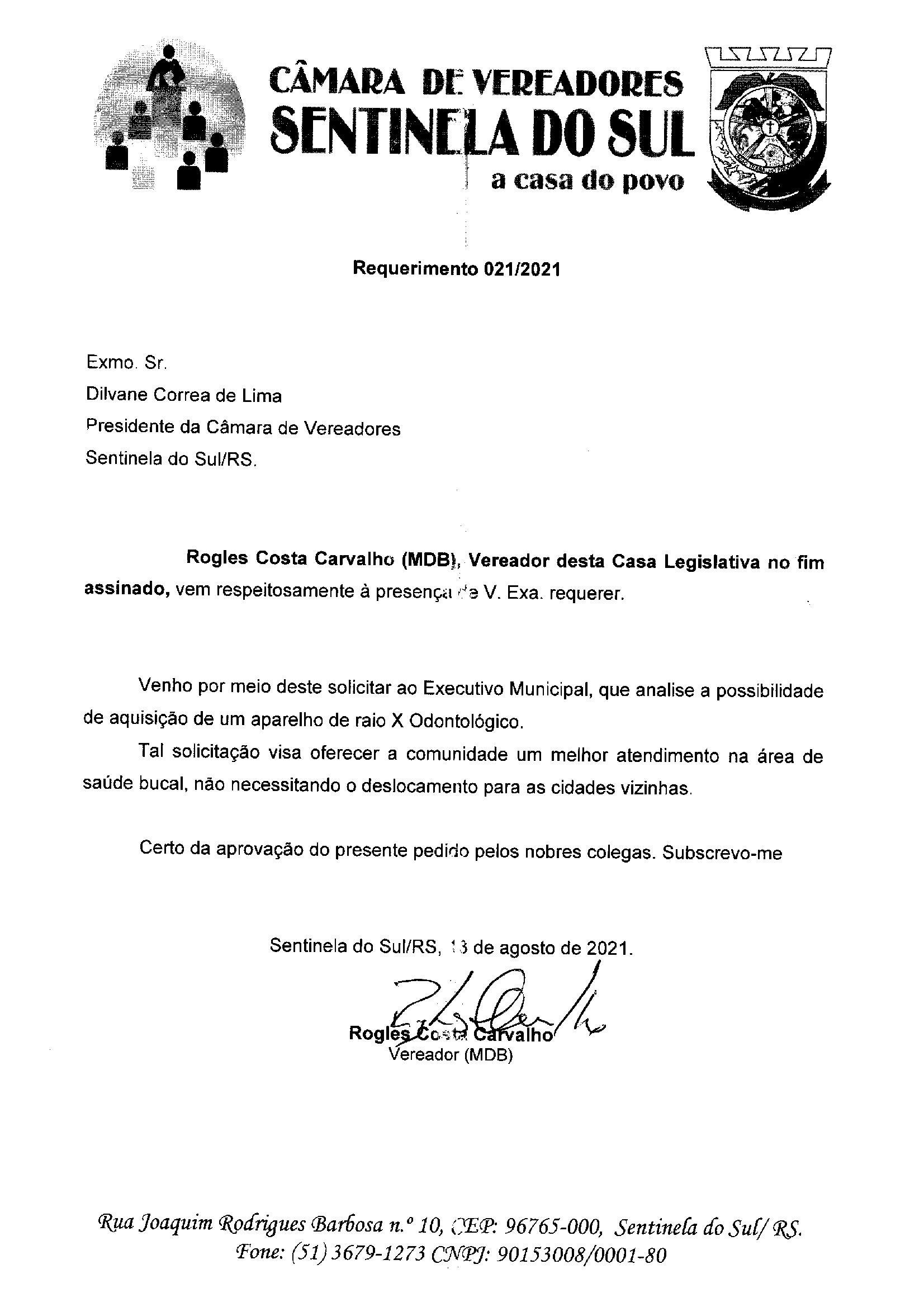 Requerimento nº 021/2021