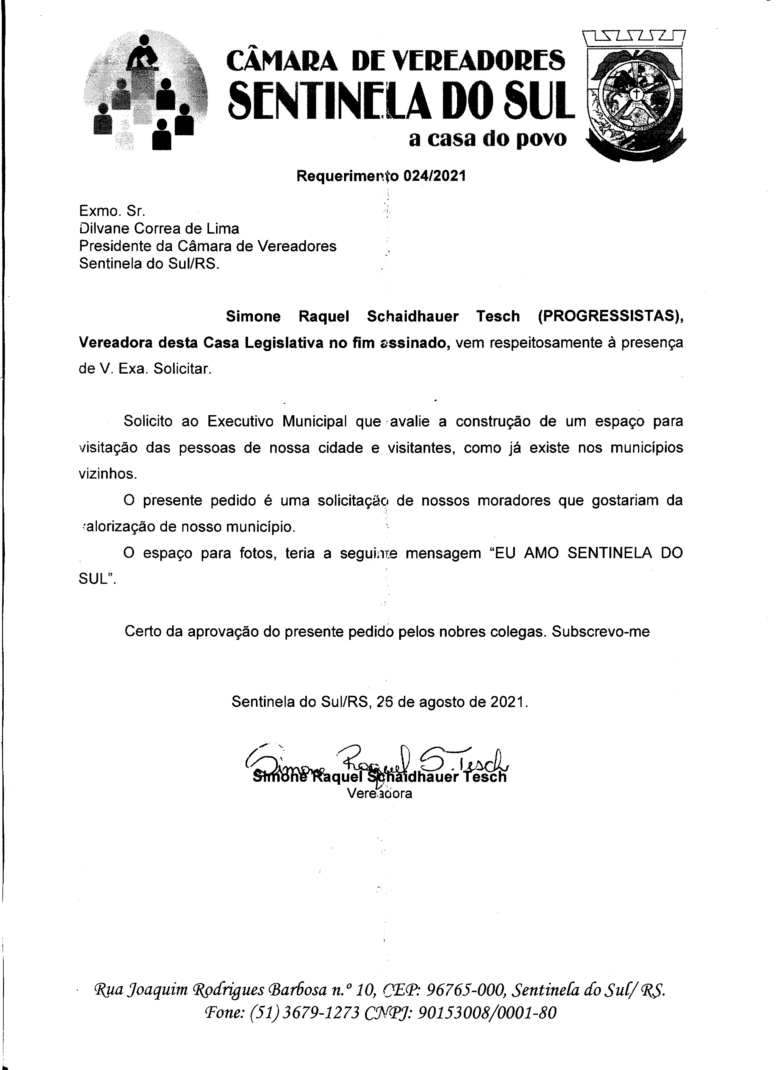 Requerimento de autoria da vereadora Simone Raquel Schaidhauer Tesch