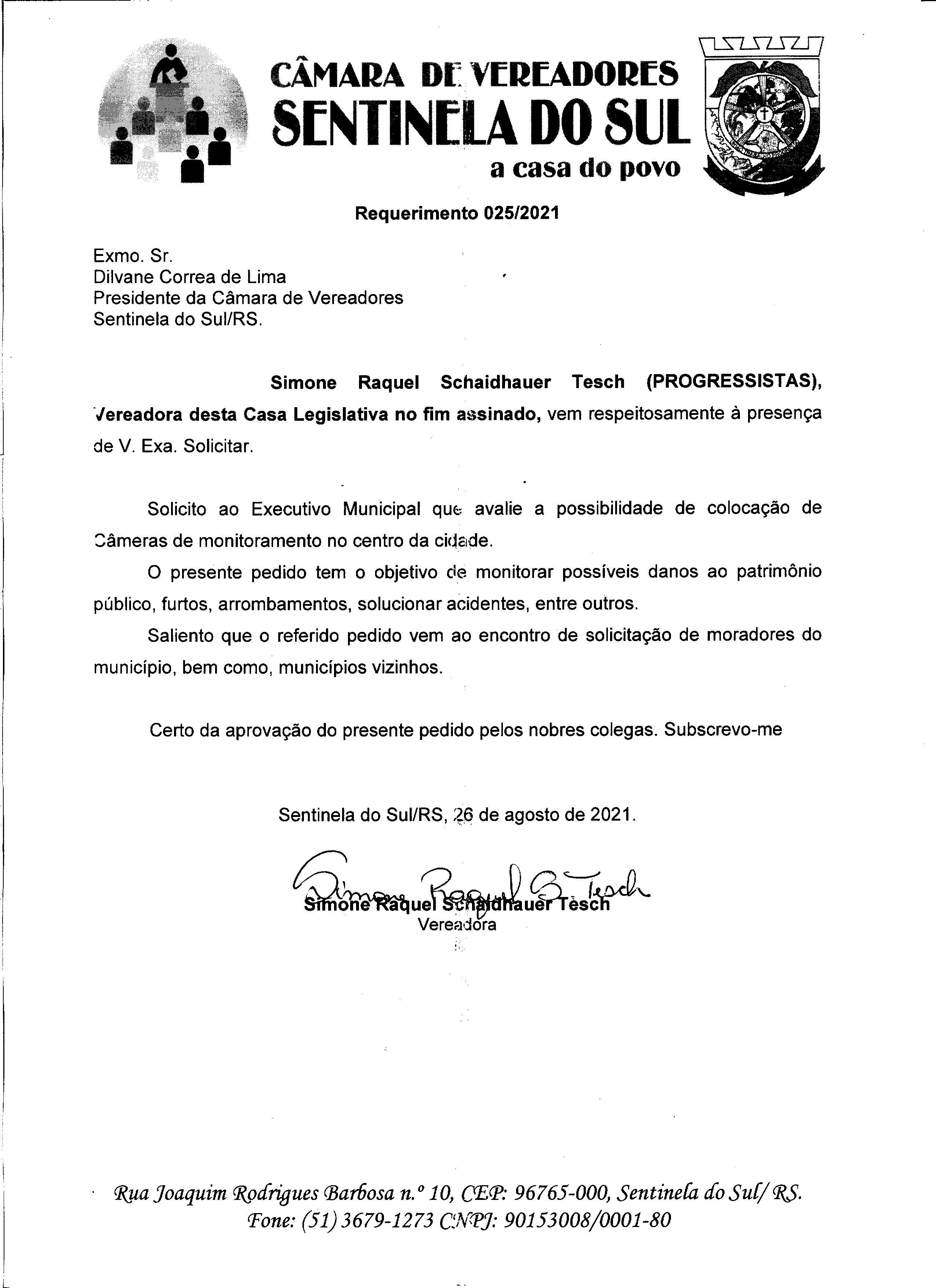 Requerimento de autoria da vereadora Simone Raquel Schaidhauer Tesch