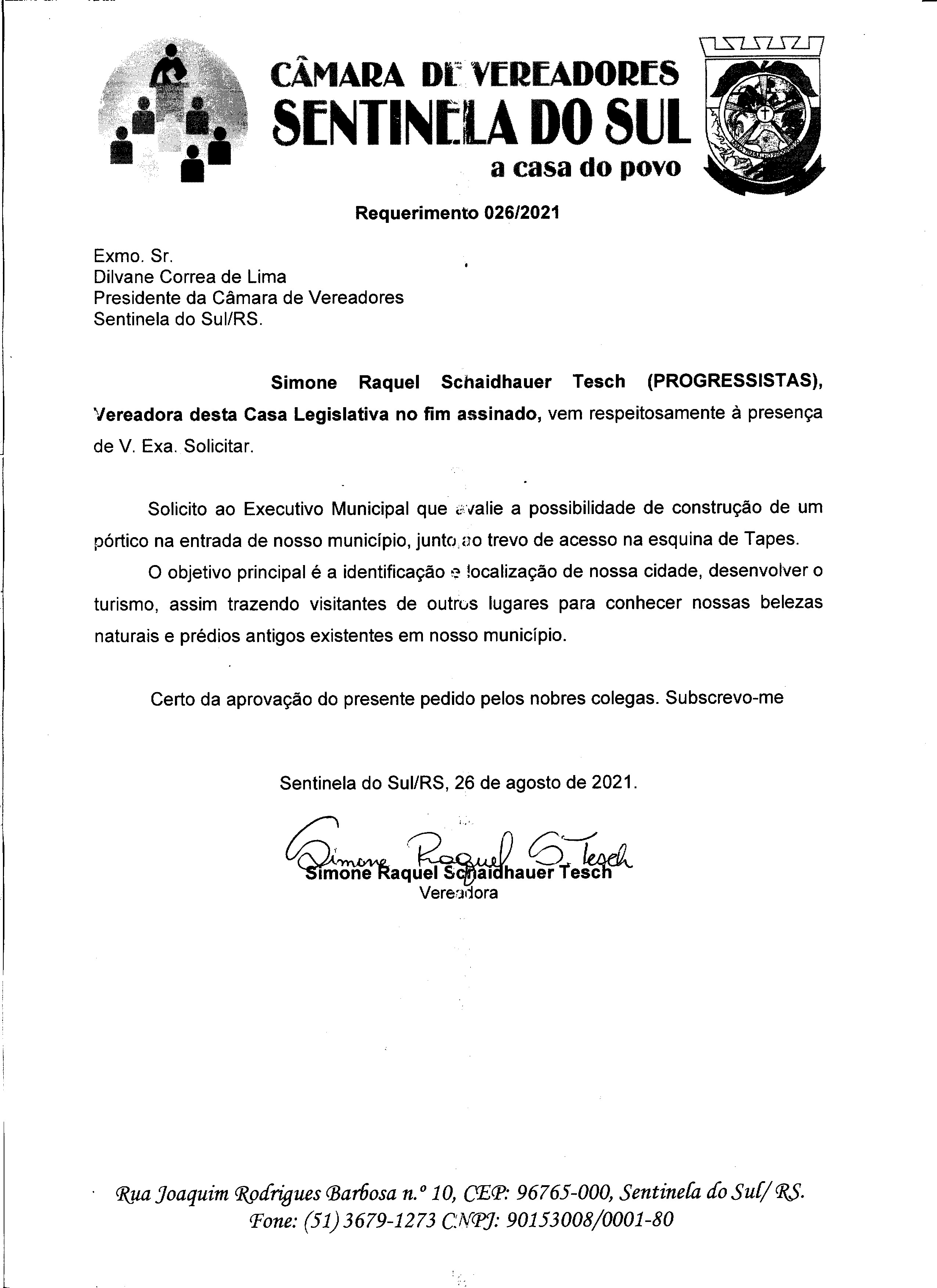 Requerimento de autoria da vereadora Simone Raquel Schaidhauer Tesch