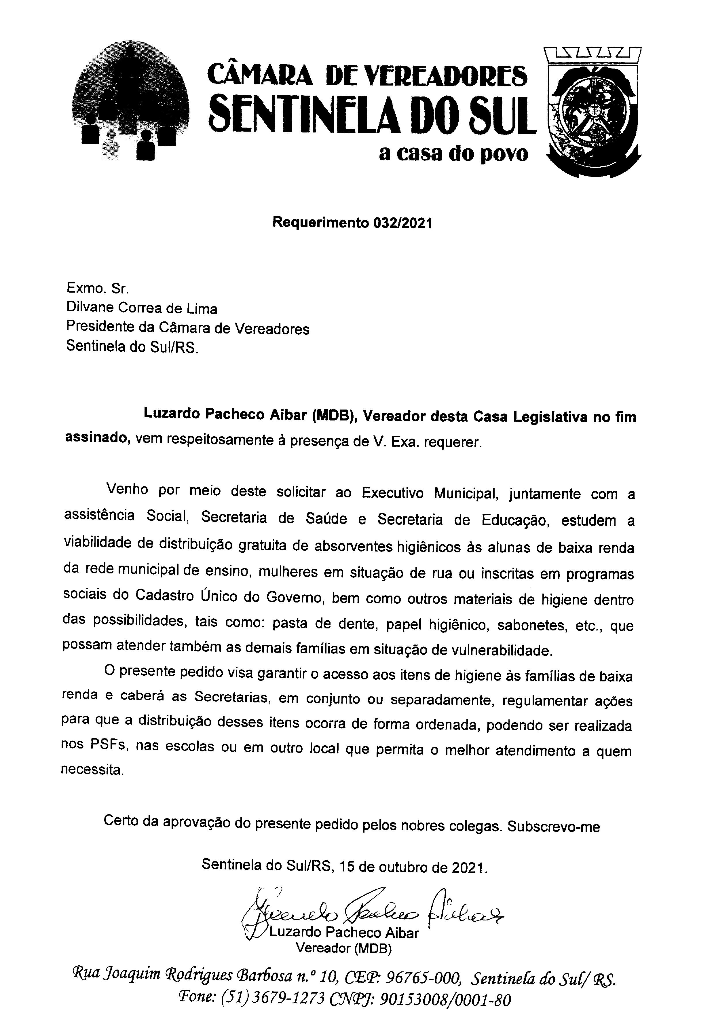 Requerimento nº 032/2021