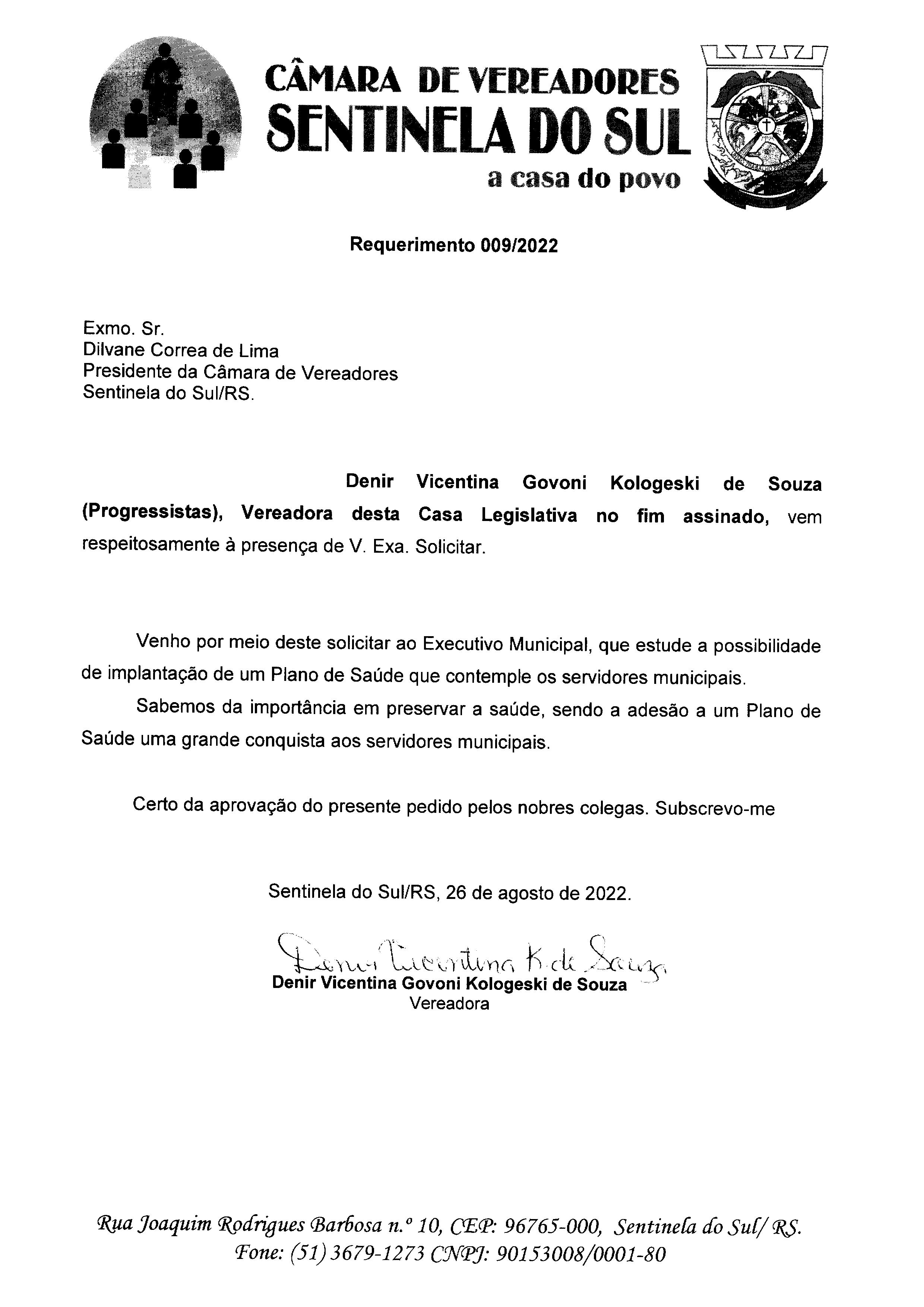 REQUERIMENTO Nº 009/2022