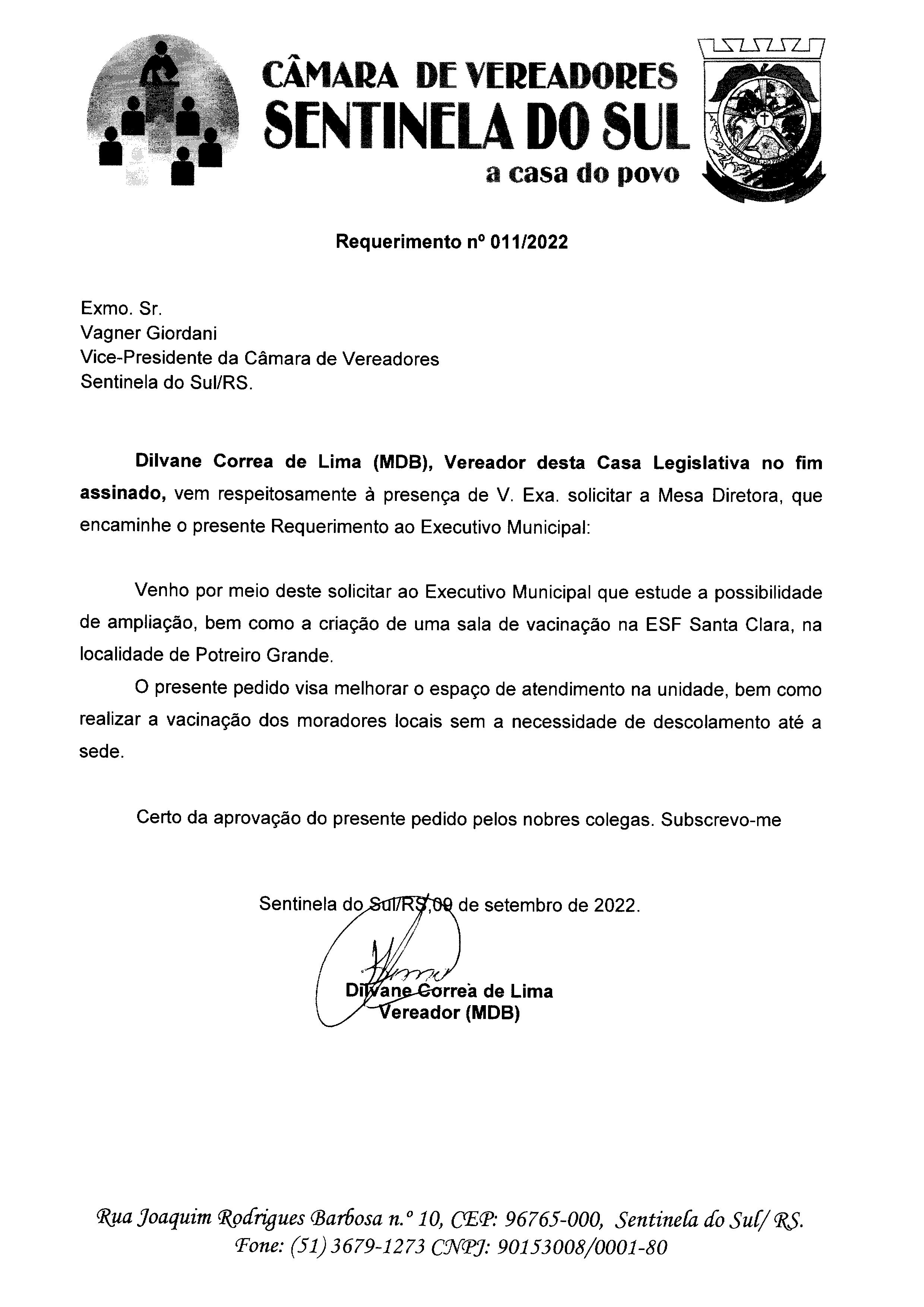 Requerimento de autoria do Vereador Dilvane Correa de Lima