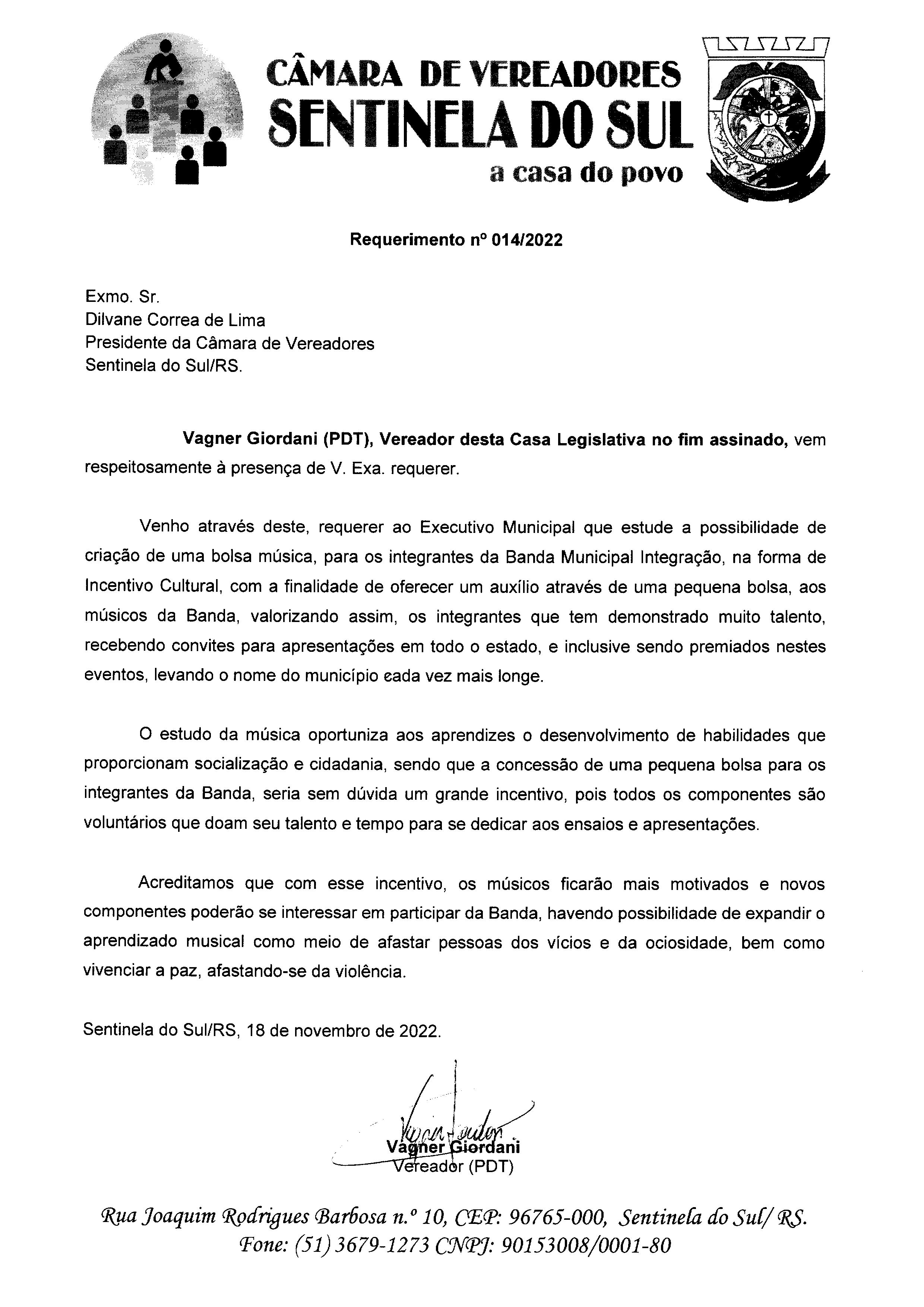 REQUERIMENTO Nº 014/2022