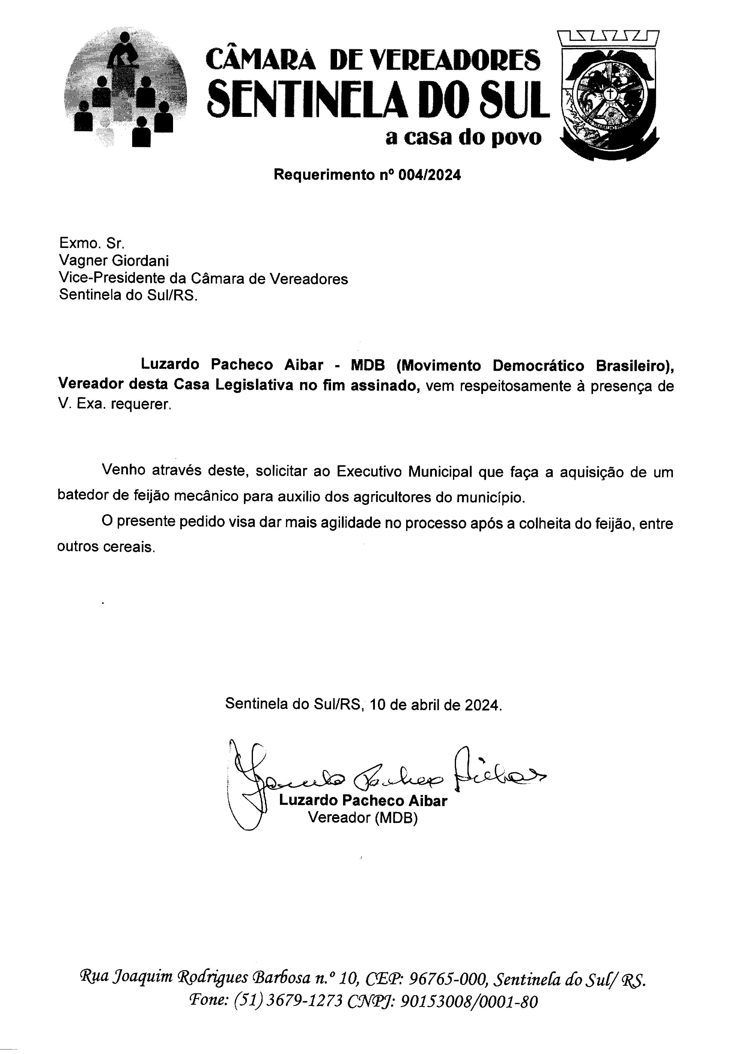 Requerimento nº 004/2024