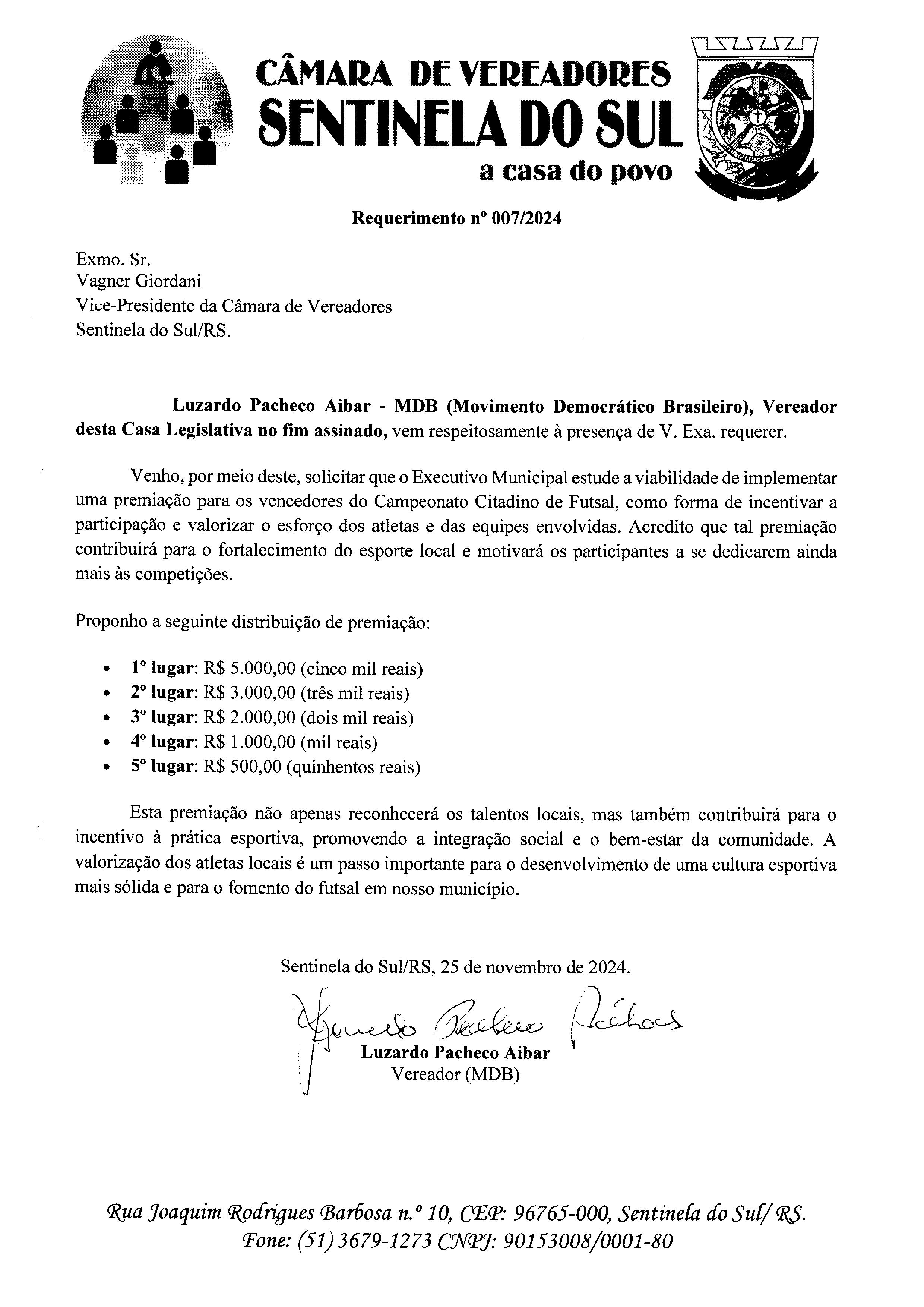 Requerimento nº 007/2024